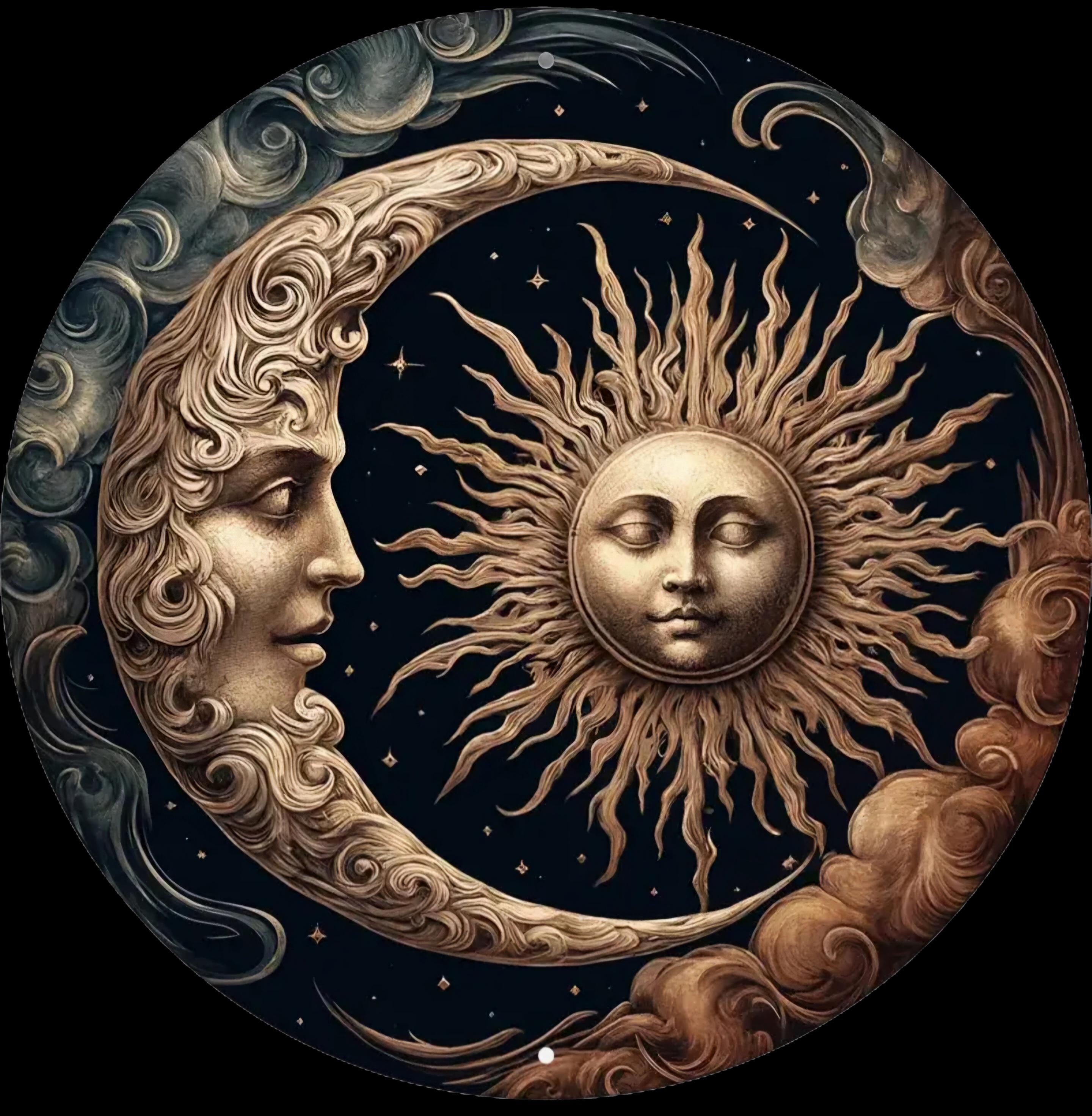 Ethereal Glory Sun and Moon Celestial Metal Sign.