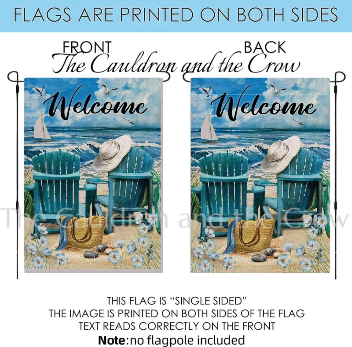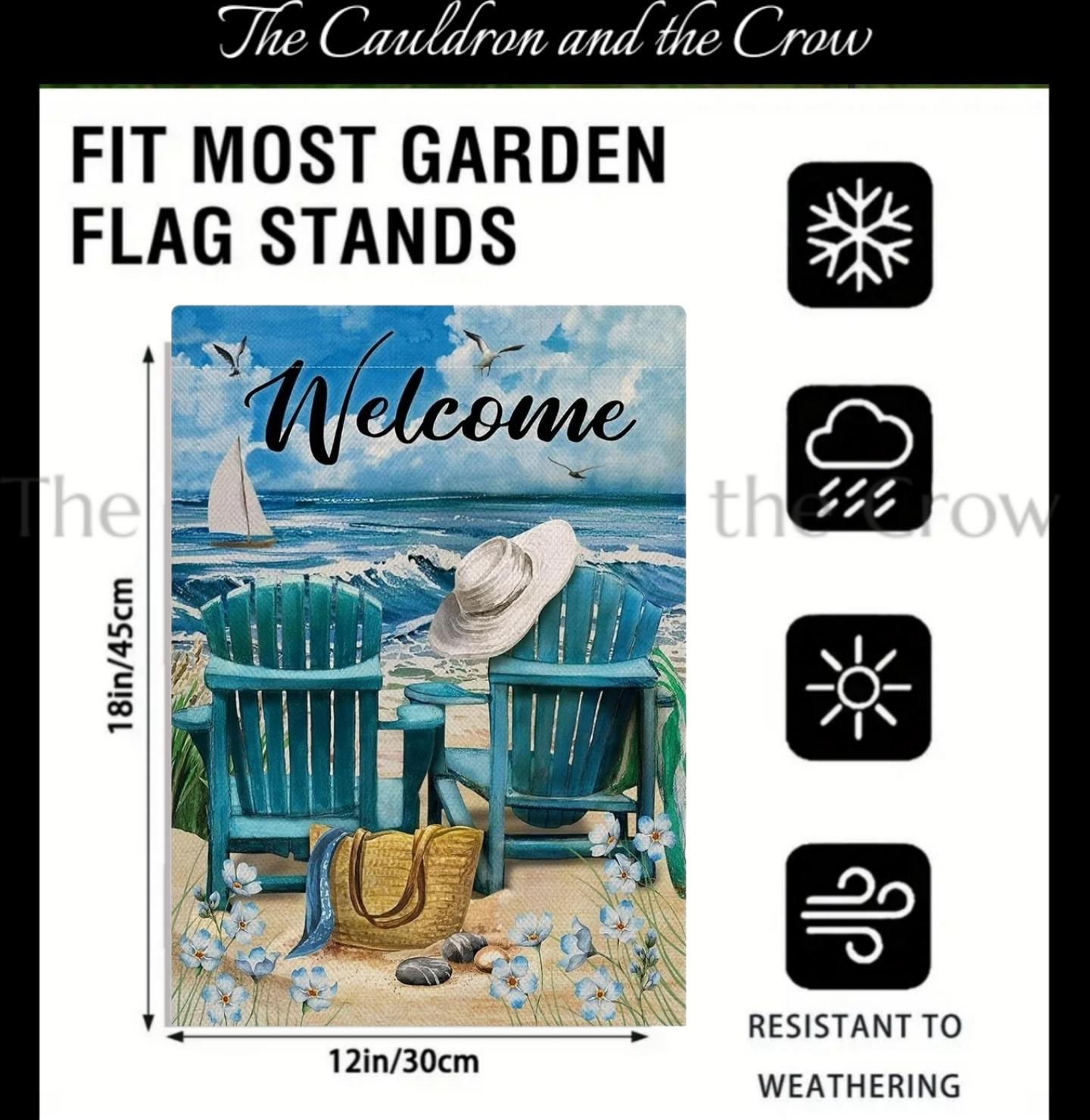 Seaside Escape Welcome Flag for patio, lawn, garden, yard, deck, porch, or veranda