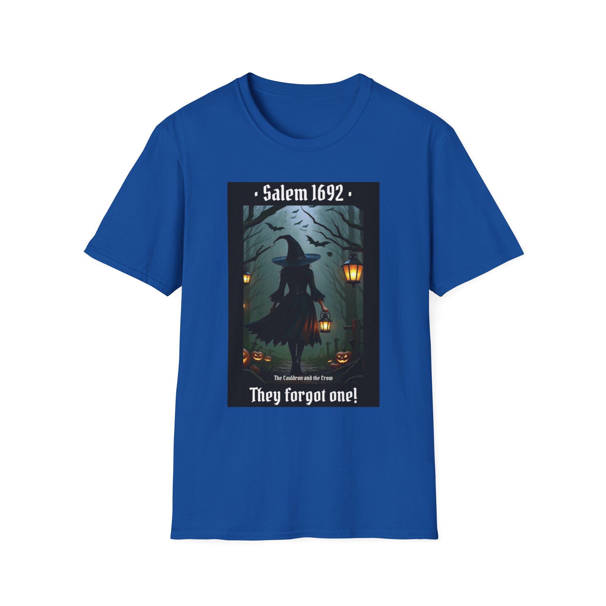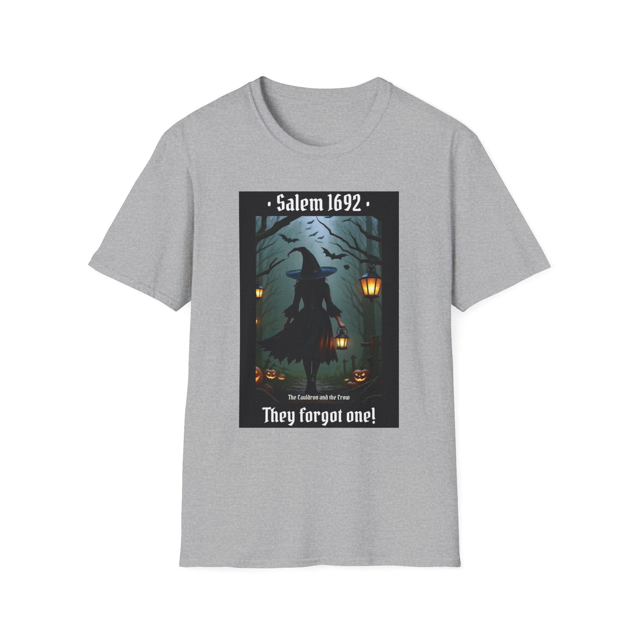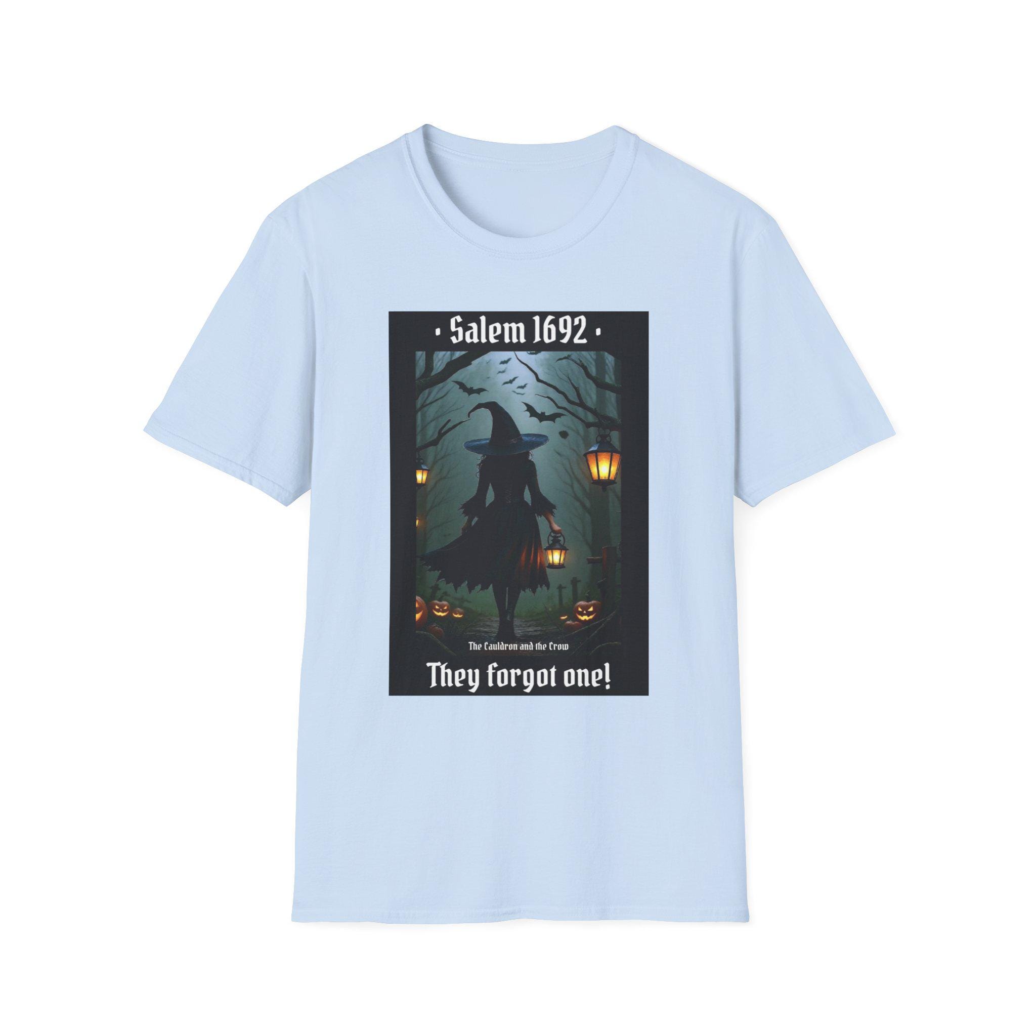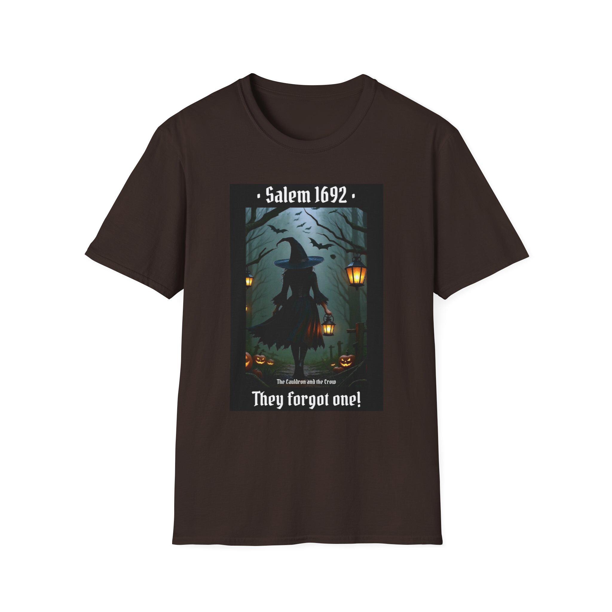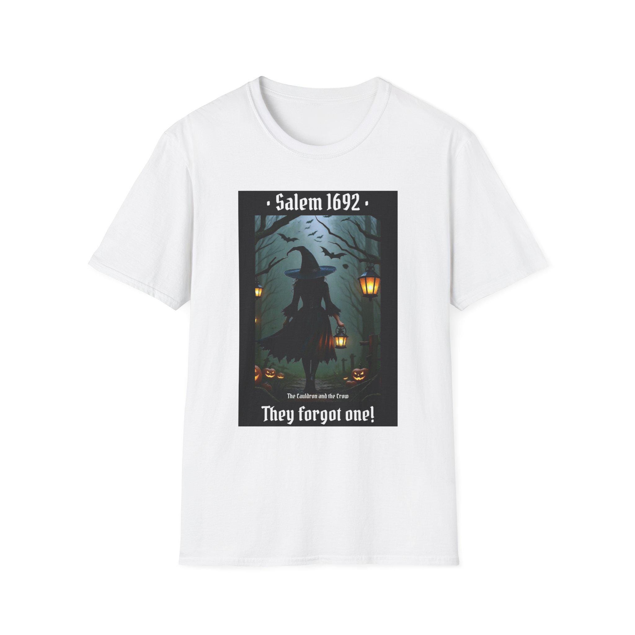 This Salem 1692 They forgot one T-Shirt gives off a mysterious and historical vibe, perfect for those interested in witchcraft, history, or the Salem Witch Trials. It is relevant for Halloween, historical reenactments, or anyone looking to make a statement with their fashion choices. Made from soft and durable ring-spun cotton, this unisex T-shirt offers comfort and style for everyday wear.
